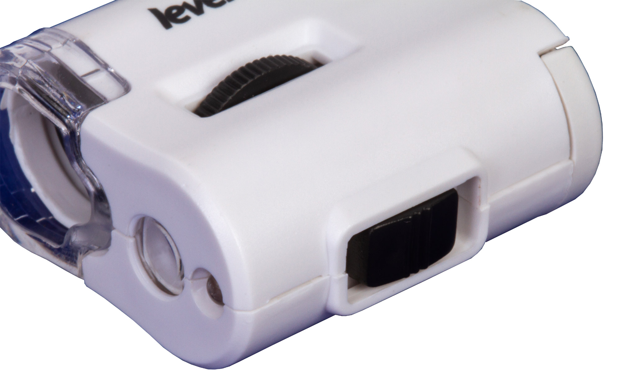 Кроме ультрафиолетовой подсветки в микроскопе есть и классические светодиоды, поэтому Levenhuk Zeno Cash ZC2 можно использовать для обычных визуальных наблюдений с увеличением в 60 крат. Режим работы подсветки выбирается переключателем на корпусе. Для питания обеих используются батарейки (включены в комплект поставки). За настройку резкости в микроскопе отвечает крупное колесо грубой фокусировки. Вращая его, можно добиться максимально четкой картинки.