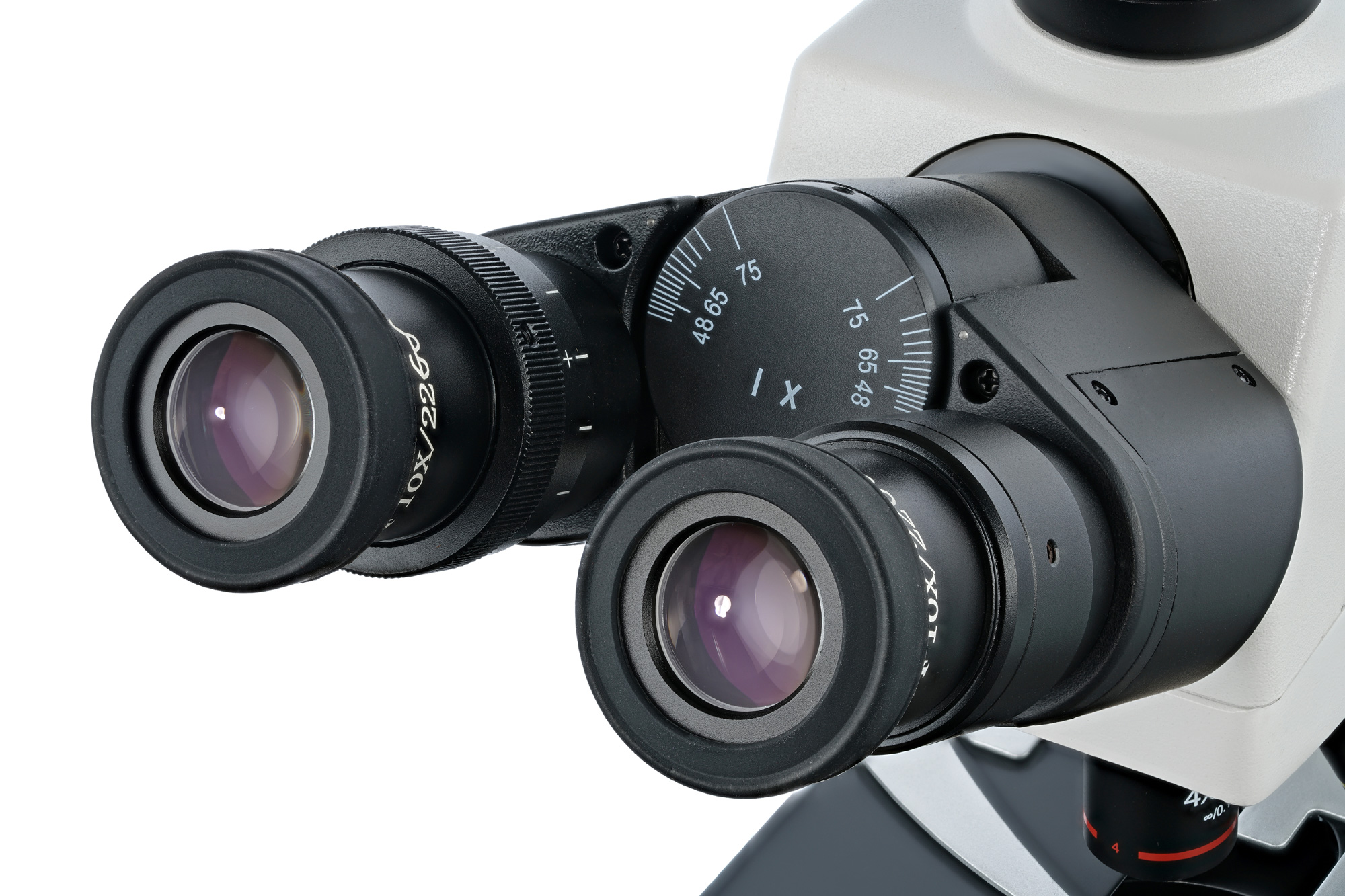 Револьверное устройство вмещает пять объективов, в комплект поставки включены четыре фазовых планахроматических объектива разной кратности. У высокократных объективов есть пружинящие оправы. Для наблюдений иммерсионным методом используется 100-кратный объектив. Широкопольные окуляры позволяют работать с протяженными образцами и настраивать диоптрии под особенности зрения пользователя. Оптика передает картинку высокой четкости и контрастности, формирует плоское поле, минимизирует хроматизм. Все аксессуары сделаны из оптического стекла с антигрибковым покрытием. Использование планахроматических микроскопов делает клинические исследования более результативными, так как они передают более четкую и детализированную картинку.