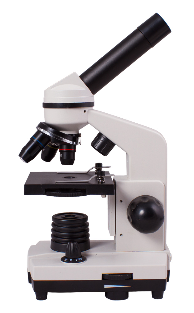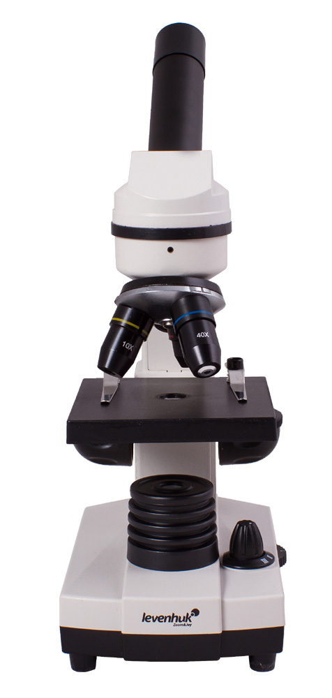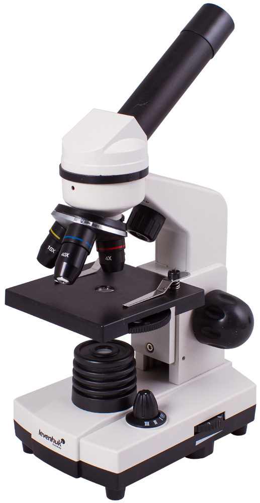 Линзы сделаны из специального стекла – оно отличается высокой прозрачностью и не искажает картинку. На оптические поверхности нанесено многослойное просветляющее покрытие, которое повышает светопропускание. Изображение получается четким и контрастным – начинающий исследователь сможет рассмотреть множество интереснейших деталей. Три объектива позволяют получить увеличения 40, 100 и 400 крат. Чтобы поменять кратность, нужно просто повернуть револьверное устройство.