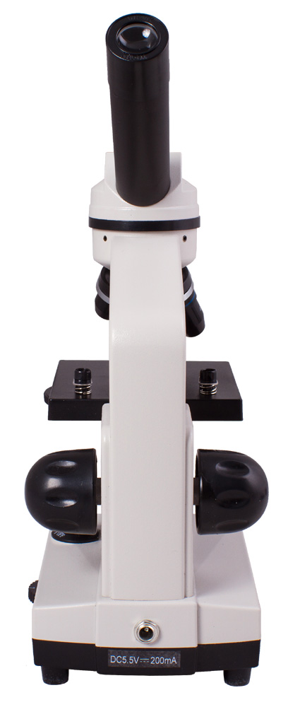 Корпус сделан из прочного пластика, так что микроскоп получился надежным и в то же время легким. Благодаря наклону окулярной насадки начинающий исследователь не будет уставать при занятиях с прибором. Подсветка может работать и от сети переменного тока, и от стандартных батареек.