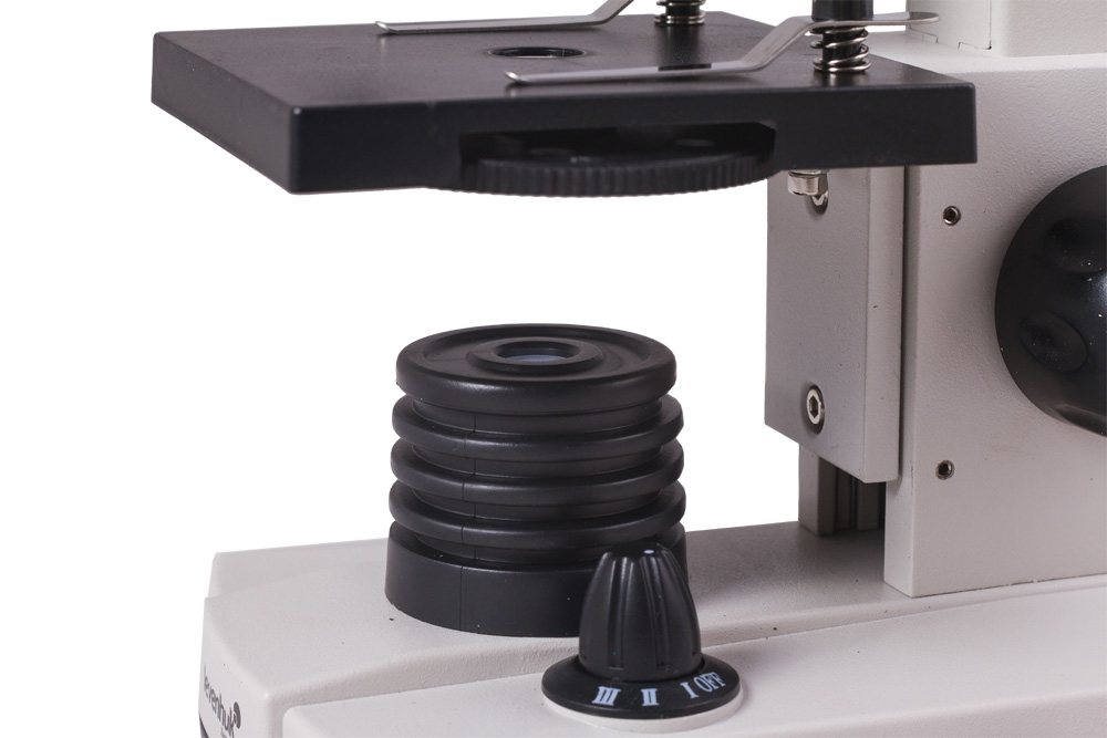 Микроскоп снабжен двумя светодиодными осветителями. Чтобы рассмотреть препараты на просвет, используется нижняя подсветка. Так изучают тонкие срезы растений или прозрачные жидкости. Верхняя подсветка нужна для работы с непрозрачными препаратами, например металлом или бумагой. Полупрозрачные объекты хорошо различимы, когда включены оба осветителя одновременно. Яркость подсветки регулируется, так что для каждого препарата можно подобрать подходящий уровень освещения.