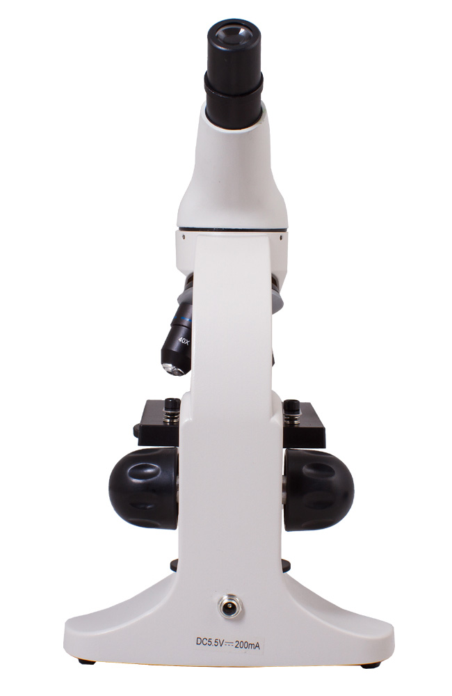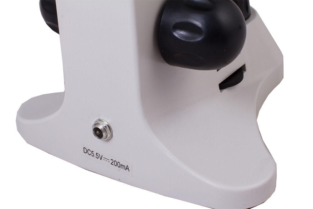 Корпус сделан из прочного пластика, поэтому микроскоп получился одновременно надежным и легким. Чтобы пользователь не уставал при работе с прибором, окулярная насадка наклонена под углом 45°. Кроме того, она вращается на 360° вокруг оси – во время групповых занятий поверните насадку в нужную сторону, не двигая сам микроскоп. Есть возможность работы от сети переменного тока и от батареек.