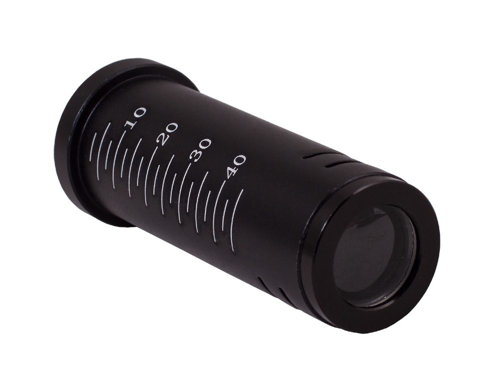 В комплект входят три объектива: 4x, 10x, 40xs. Объектив 40xs снабжен пружинным механизмом, который защищает оптику от повреждений. Если при фокусировке случайно коснуться объективом препарата, подпружиненный объектив отодвинется и не сломает покровное стекло. Оптика также останется целой. В комплект входит линза Барлоу, удваивающая кратность микроскопа с каждым объективом. Таким образом, в базовой комплектации прибор дает увеличения, 64, 128, 160, 320, 640 и 1280 крат!