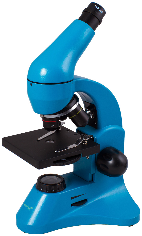 Современный микроскоп Levenhuk Rainbow 50L PLUS Azure\Лазурь идеально подойдет и школьнику, интересующемуся наукой, и студенту-биологу. У этой модели много достоинств: качественная оптика, широкий диапазон увеличений, удобный и надежный корпус. Начинающим исследователям пригодится набор для опытов, который входит в комплект, а опытные пользователи оценят отличные технические характеристики прибора. Благодаря яркому корпусу лазурного цвета микроскоп выглядит очень стильно – его будет приятно получить в подарок.