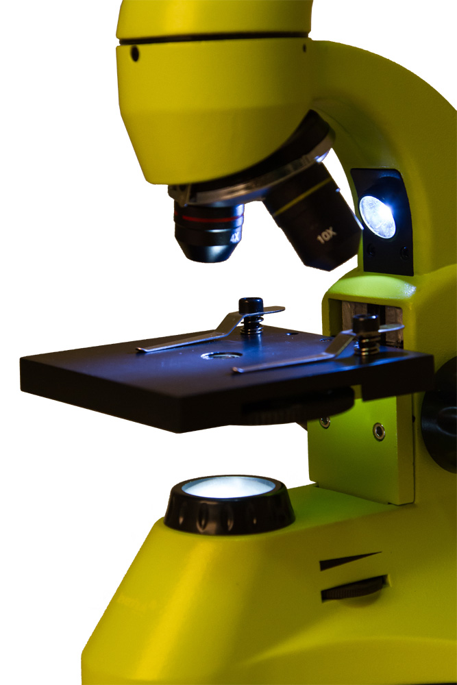 Для освещения препаратов используются два встроенных осветителя. Когда нужно рассмотреть микроорганизмы в капле воды, изучить клеточное строение растения или исследовать другой прозрачный препарат, включите нижнюю подсветку. Верхний осветитель нужен для работы с непрозрачными объектами – с его помощью удобно разглядывать не видимые невооруженным глазом волокна бумаги или царапины на монете. Полупрозрачные образцы хорошо различимы, когда обе подсветки включены одновременно. Благодаря регулируемой яркости легко настроить оптимальное освещение для каждого препарата.
