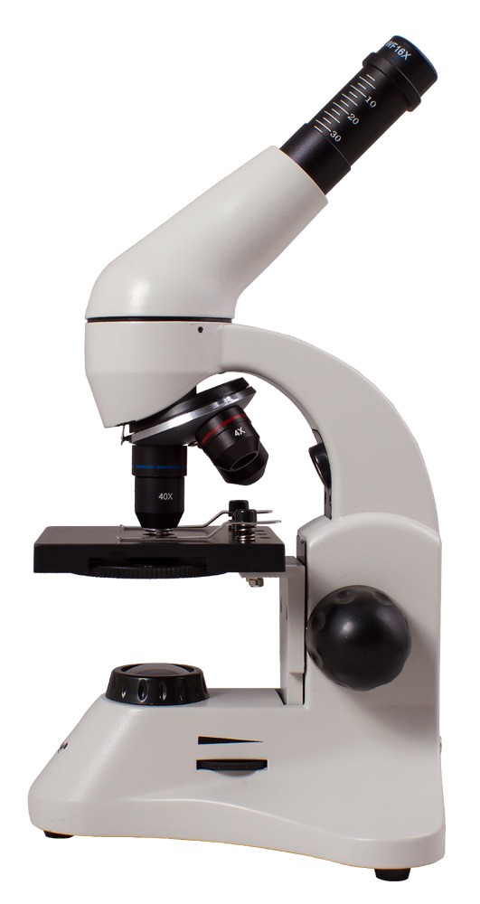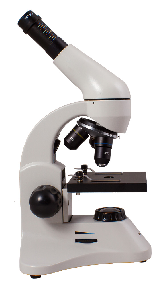 Корпус прибора изготовлен из металла – микроскоп прекрасно подходит для частого использования, например для проведения школьных уроков биологии или лабораторных работ в вузе. Чтобы пользователь не уставал при занятиях с микроскопом, окулярная насадка наклонена под углом 45°. Кроме того, монокулярная насадка вращается на 360° вокруг оси – при групповой работе просто поверните ее в нужную сторону, не двигая сам микроскоп.