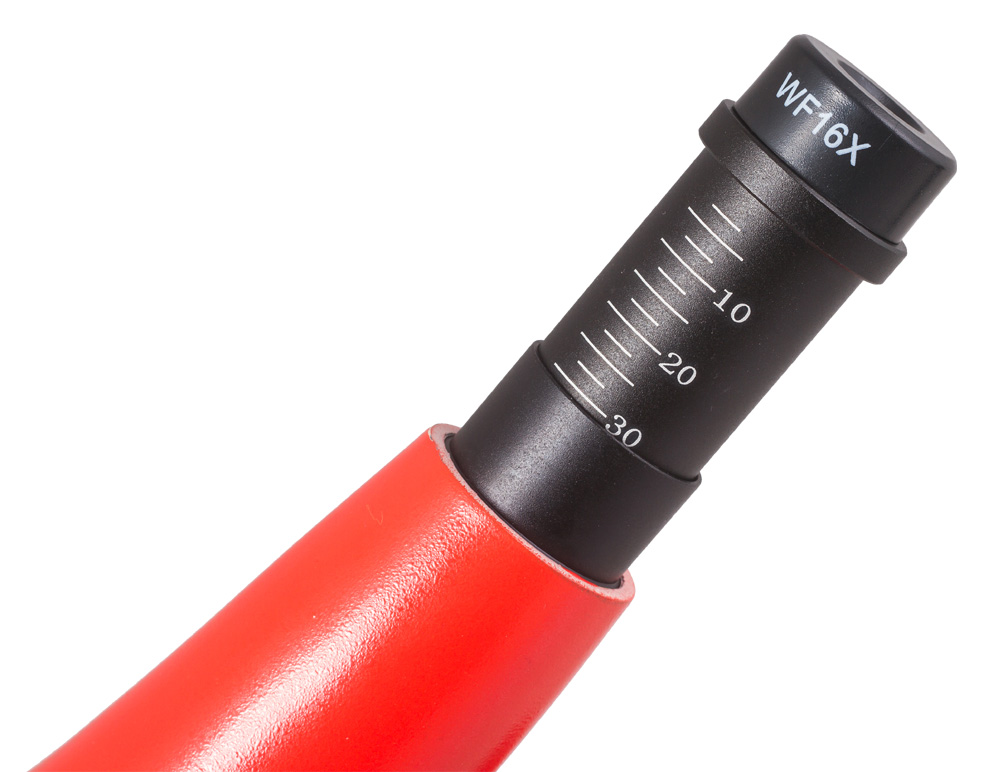 Корпус прибора сделан из металла – микроскоп рассчитан на частое использование. Для комфортной работы окулярная трубка наклонена под углом 45°. Кроме того, монокулярная насадка вращается на 360° вокруг оси – пи групповых занятиях просто поверните ее в нужную сторону, не двигая сам микроскоп.