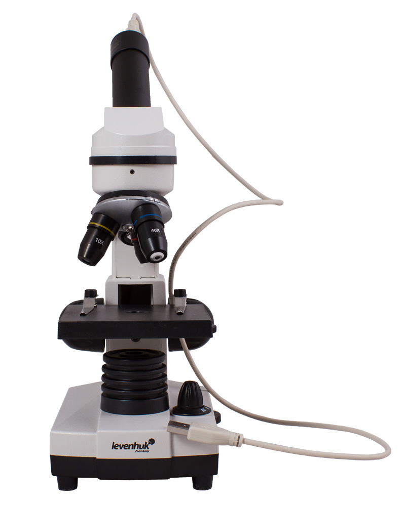 В комплект входит цифровая камера с матрицей 0,3 Мпикс. Для фото- или видеосъемки установите камеру в окулярный узел вместо окуляра и подключите устройство к компьютеру через USB-кабель. Удобно, что увеличенное изображение микропрепарата будет отображаться на мониторе. В комплект входит фирменное программное обеспечение, с помощью которого легко делать фотографии и снимать видеоролики. Чтобы похвастаться своими открытиями, достаточно опубликовать фотографию инфузории-туфельки в Instagram или загрузить ролик на YouTube.