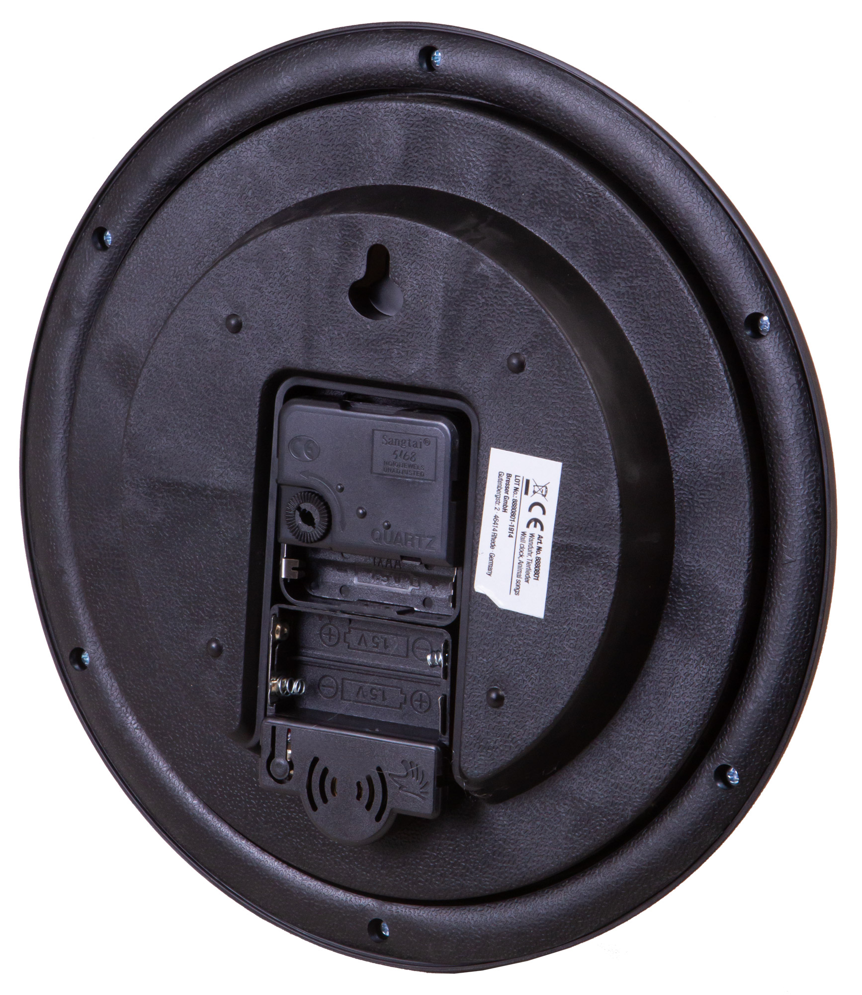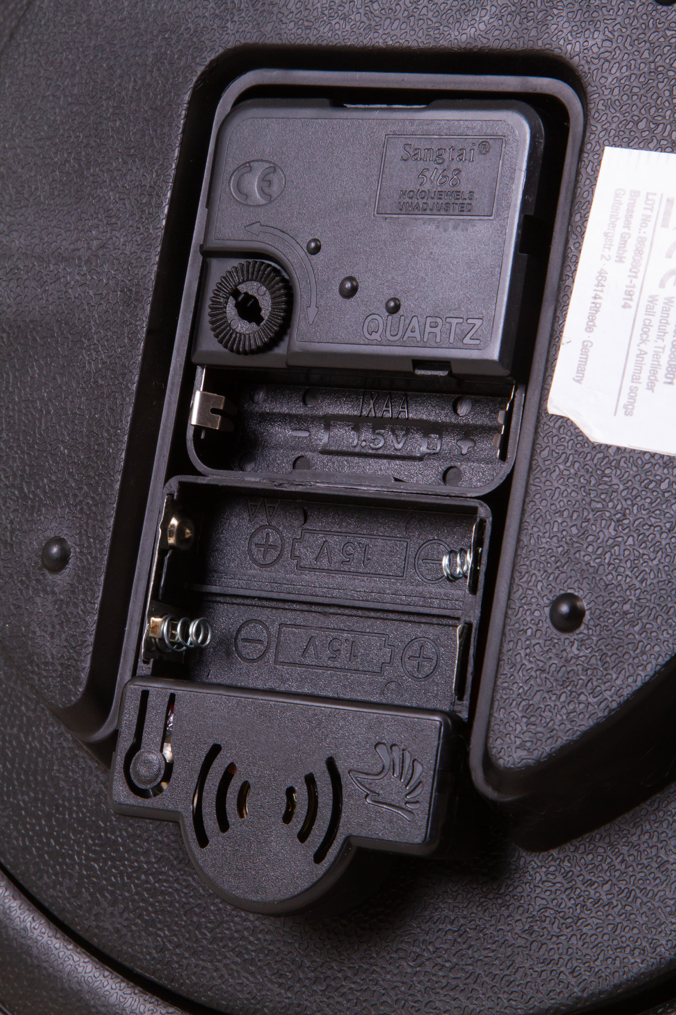 Звуковой сигнал настроен таким образом, что включается только днем (с 6 до 21 часа) и не звучит ночью (с 22 до 6 часов). При необходимости звук можно отключить вовсе, просто вынув батарейки из соответствующего отсека. Часовой механизм при этом продолжит работать в обычном режиме.
