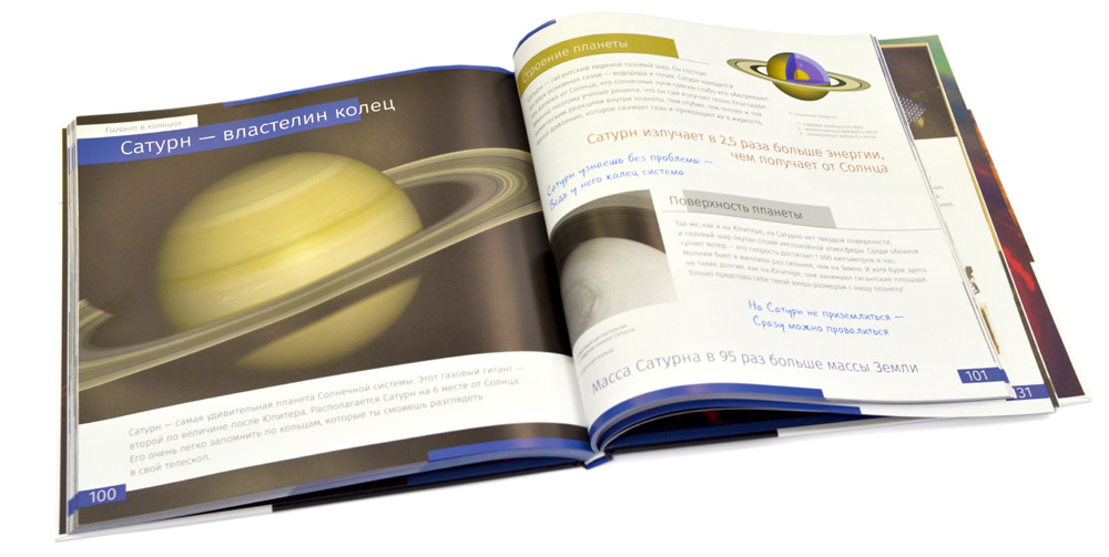 Книга знаний «Космос. Непустая пустота» состоит из разделов, каждый из которых посвящен важным астрономическим достижениям или интересным космическим объектам. Читая ее, ребенок узнает о телескопах, основах астрономических наблюдений, Солнце, планетах и спутниках Солнечной системы, кометах, метеоритах и метеорах, туманностях, галактиках и далеких звездах.