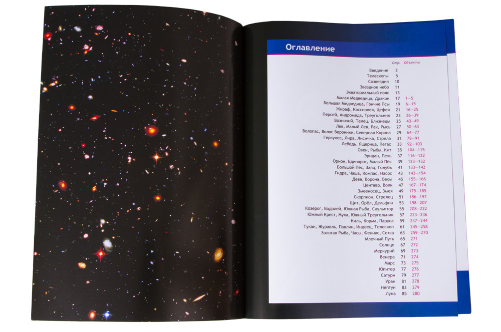 В следующих главах описывается звездное небо – книга содержит карты с координатами 280 разнообразных объектов, текстовые комментарии и фотографии. Описываются и планеты Солнечной системы и их спутники, приведены рекомендации по их наблюдению – вы узнаете, какой телескоп нужен, чтобы увидеть тот или иной объект, и как навести его в нужную точку небесной сферы.