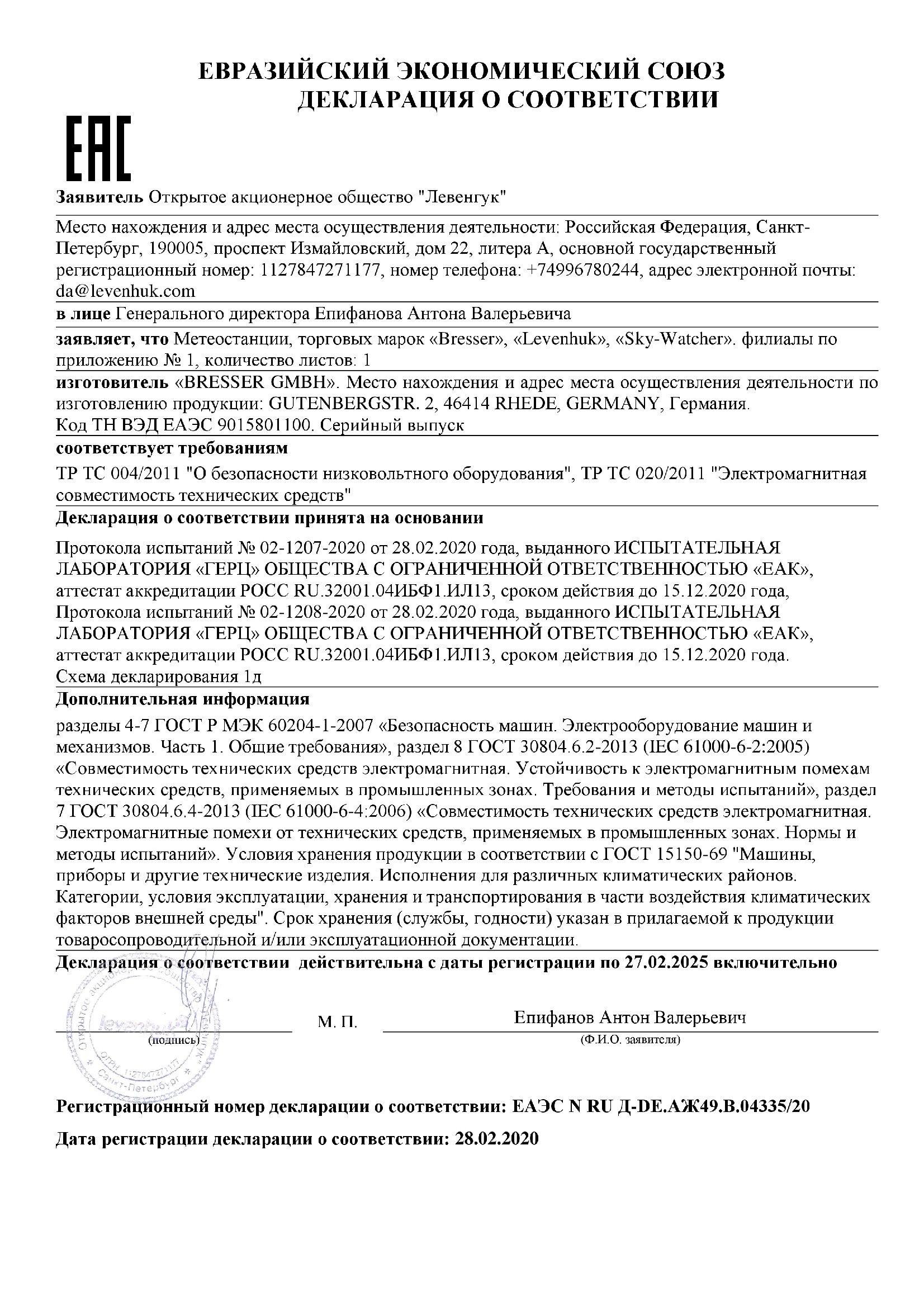 Отказные письма и декларации о соответствии на продукцию Levenhuk, Bresser, Sky-Watcher и Konus (zip)