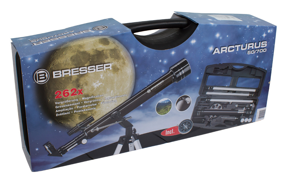 Телескоп Bresser Arcturus 60/700 – это качественный длиннофокусный рефрактор, предназначенный для начальных астрономических наблюдений, а также для изучения наземных объектов. Ахроматический объектив с многослойным просветляющим покрытием формирует четкое изображение. Хроматические аберрации при этом сведены к минимуму. Телескоп комплектуется тремя окулярами, позволяющими вести наблюдения при разном увеличении. Кроме того, в комплект входят оборачивающая линза (дает неперевернутое изображение при наземных наблюдениях) и диагональное зеркало. Труба телескопа установлена на азимутальную монтировку, простую в управлении и понятную даже для начинающих астрономов. Благодаря небольшому весу и компактным размерам телескоп прекрасно подходит для поездок на природу. Кейс для транспортировки входит в комплект. Комплектация: