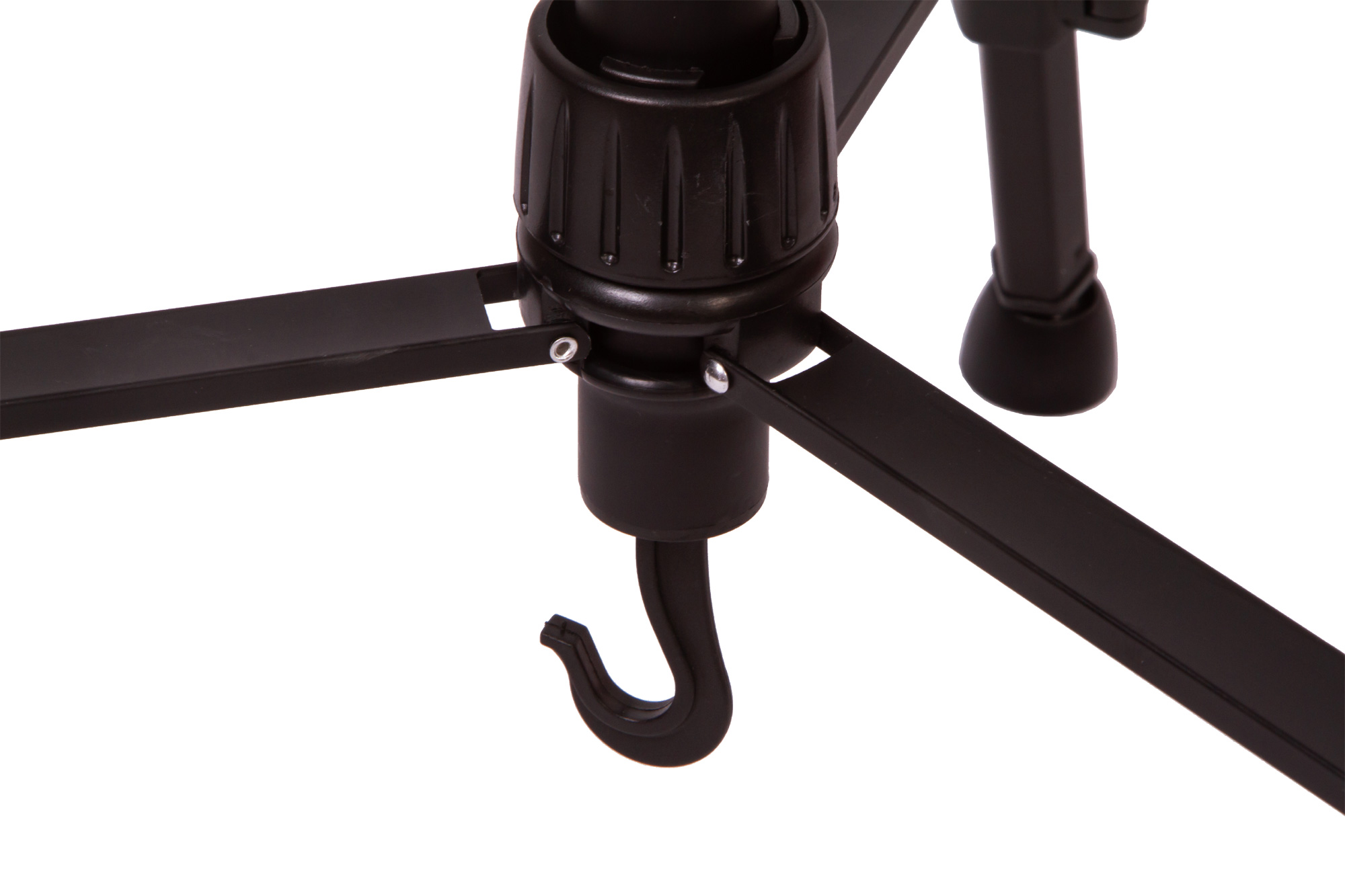 Монтировка установлена на алюминиевую треногу. Высоту каждой ножки можно регулировать отдельно, что позволяет телескопу устойчиво стоять даже на неровной поверхности.
