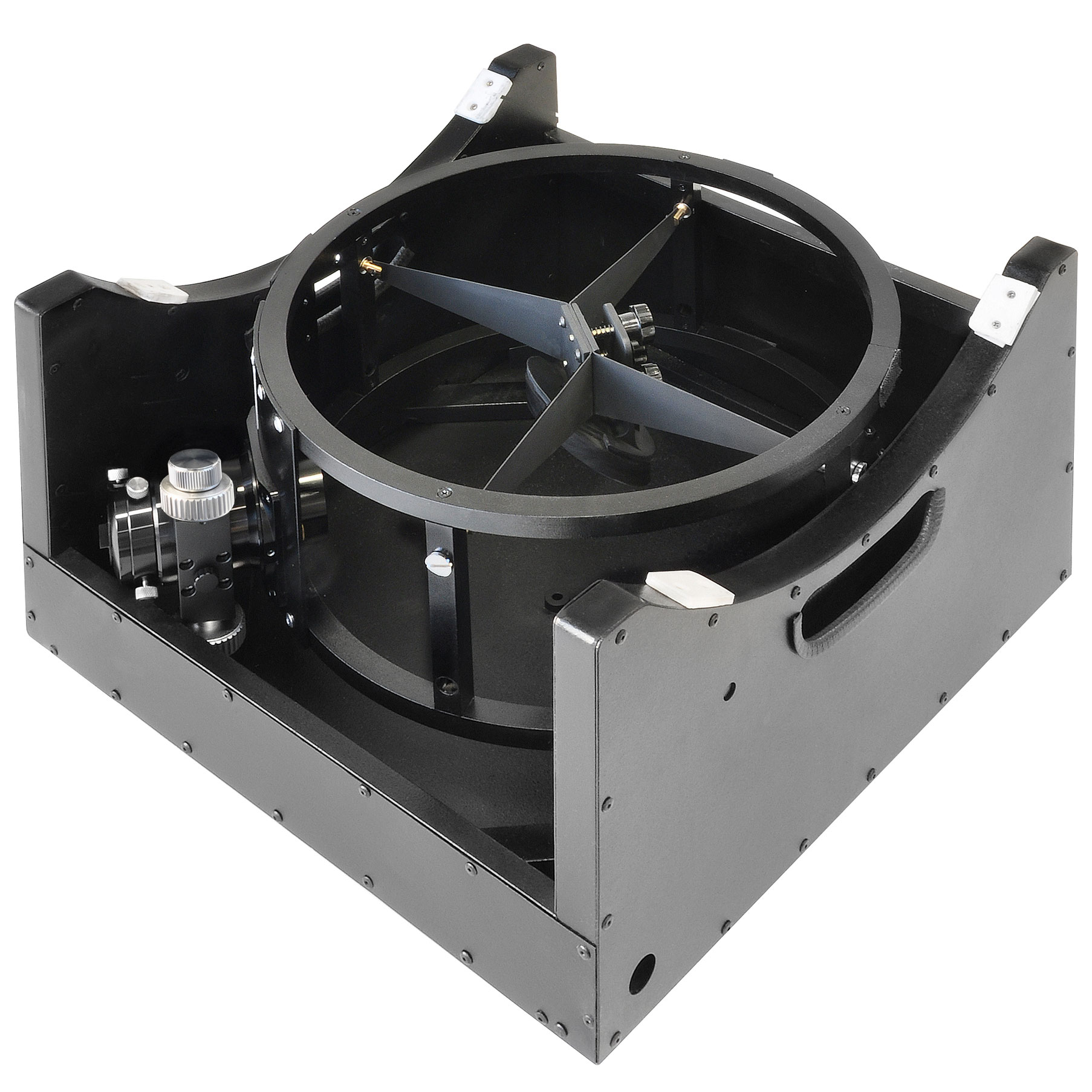 Настройка телескопа проста – крепления главного и вторичного зеркал снабжены удобными винтами для юстировки. Два встроенных вентилятора обеспечивают быструю термостабилизацию оптики.