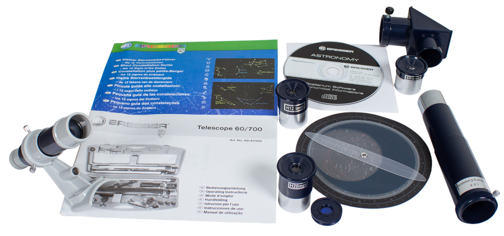 Рефрактор-ахромат. Диаметр объектива: 60 мм. Фокусное расстояние: 700 мм.