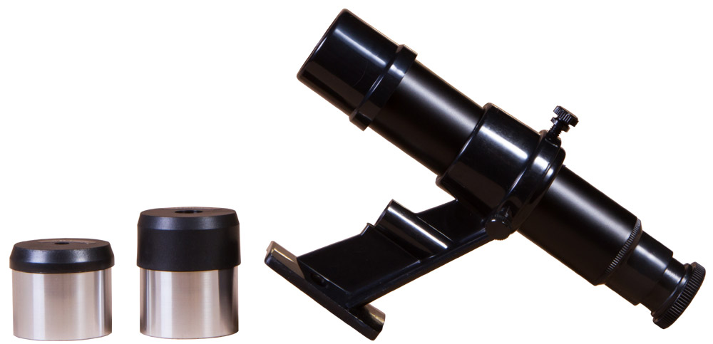 Отличные оптические возможности телескопа гармонично сочетаются с простотой управления. Азимутальной монтировкой может управлять даже ребенок, а для ее освоения понадобится всего лишь нескольких минут. Для точного наведения оптической трубы на астрономические объекты используется 5-кратный искатель, он уже включен в комплект поставки. Из дополнительных оптических аксессуаров стоит отметить окуляры. Вместе с телескопом поставляются два разнофокусных окуляра: с одним удастся разогнать оптику до 175 крат, второй дает увеличение в 35 крат.