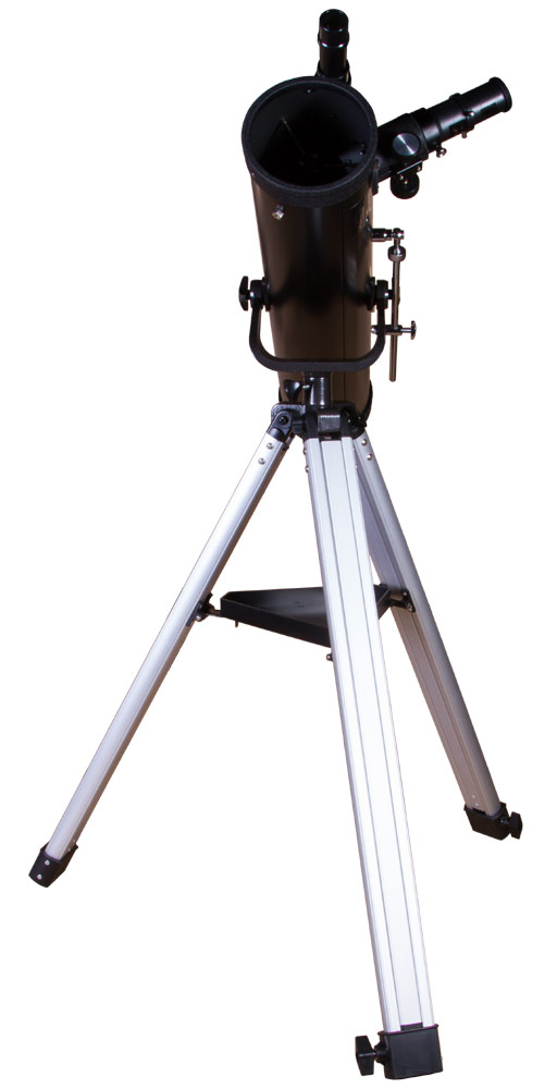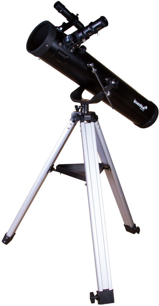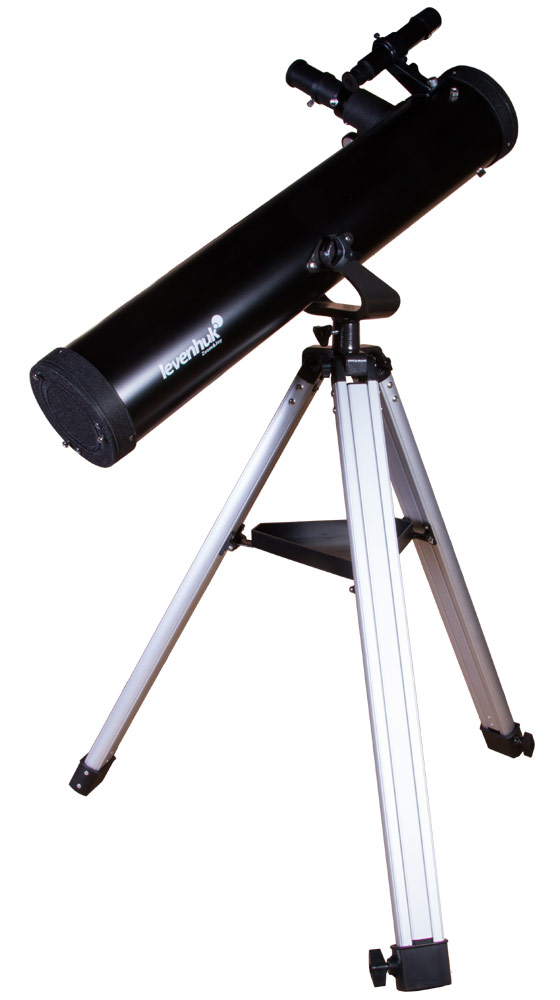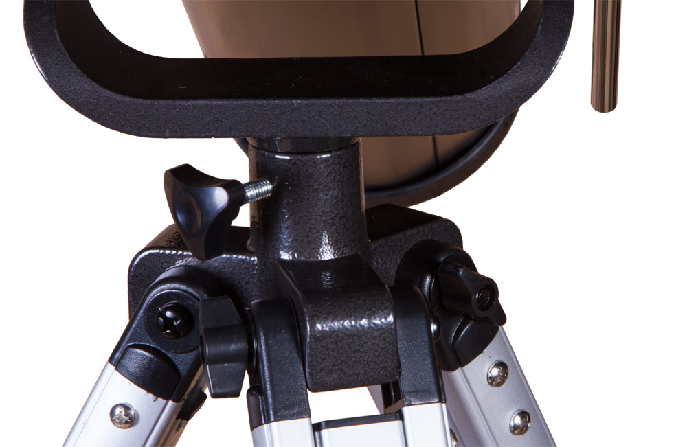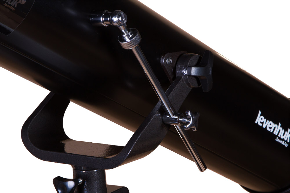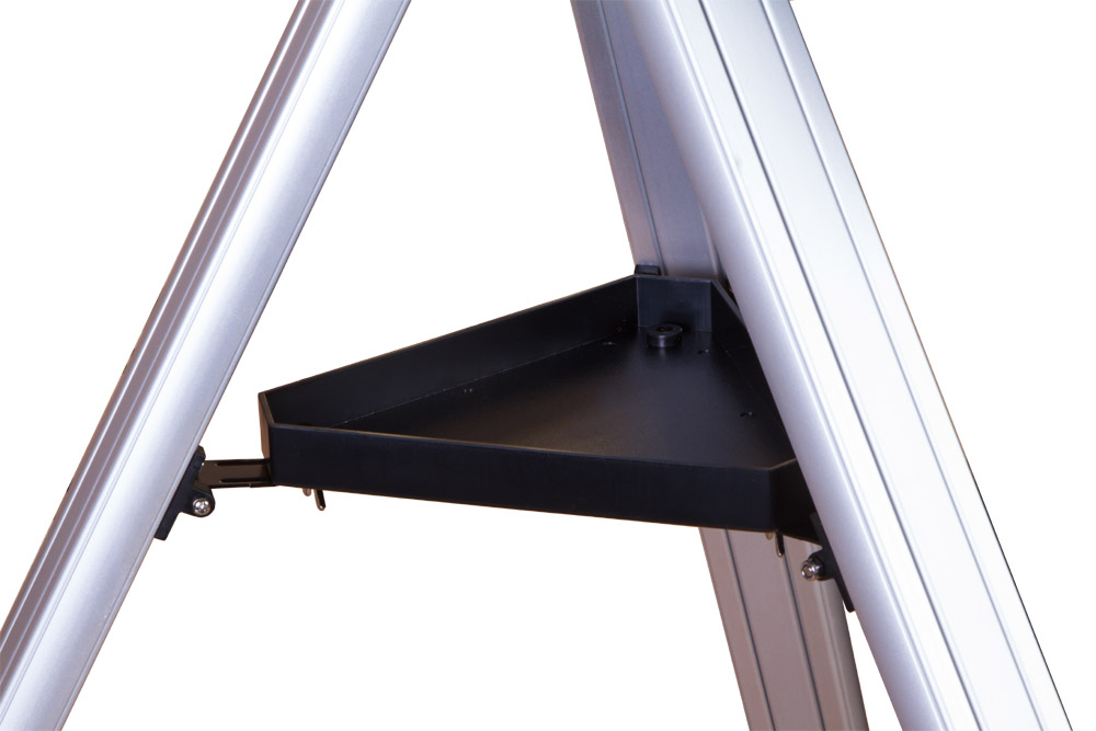 Телескоп установлен на азимутальную монтировку, которая позволяет перемещать оптическую трубу по горизонтали и по вертикали. Levenhuk Skyline BASE 80S наводится на астрономические объекты просто и быстро – с управлением легко справится даже ребенок. 6-кратный оптический искатель – дополнительная помощь при наведении. Монтировка, в свою очередь, фиксируется на алюминиевой треноге. Она стоит устойчиво и не качается даже на неровных поверхностях. Высоту ее ножек можно регулировать. Есть лоток для аксессуаров.
