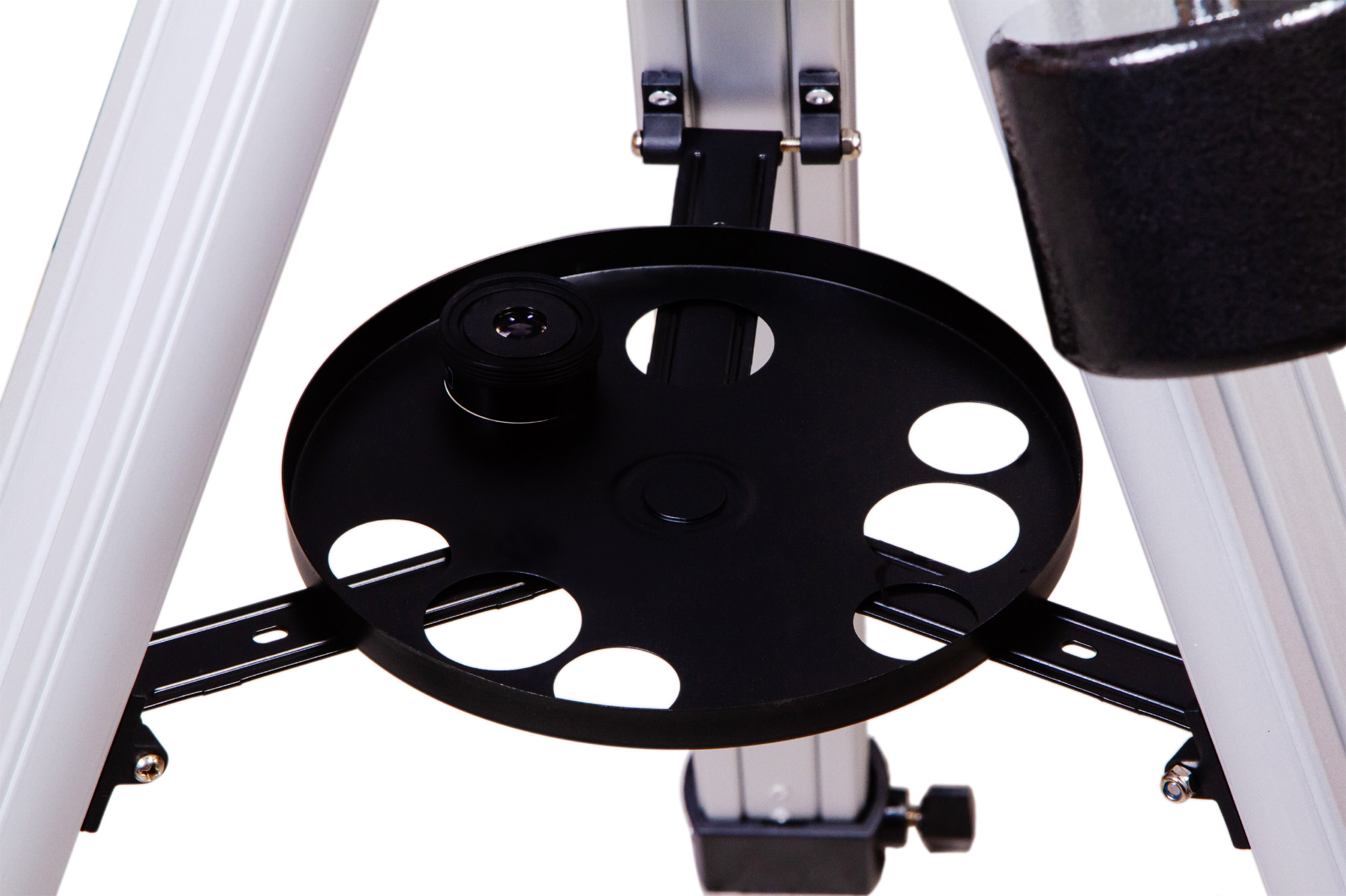 Levenhuk Skyline PLUS 80S понравится опытным астрономам, у которых уже есть опыт использования оптической техники. Телескоп установлен на экваториальную монтировку, требующую определенных навыков управления, но обеспечивающую максимальный комфорт при ведении астрономических объектов по небосклону. Монтировка крепится на алюминиевой треноге с лотком для аксессуаров. Высоту ножек треноги можно регулировать в широком диапазоне.