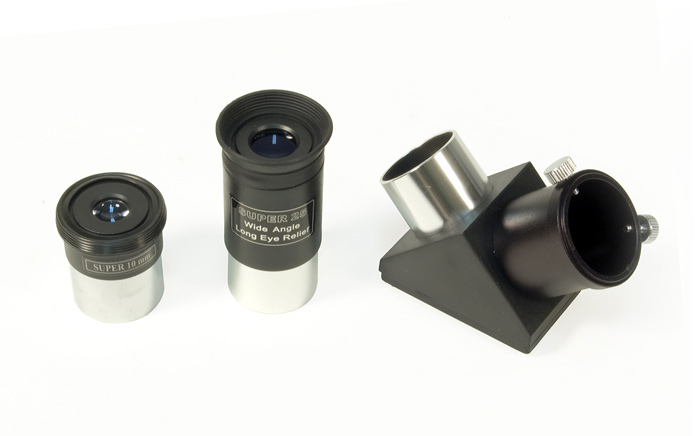 Данная модель комплектуется двумя окулярами: 10 мм (150x) и 25 мм (60x). Для поиска астрономических объектов используется искатель с красной точкой. Труба установлена на экваториальную монтировку. Высота треноги регулируется.