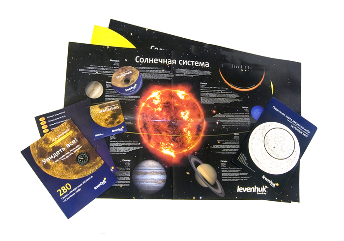 Расширенная комплектация аксессуаров для полноценного использования телескопа. Комплект дополнительных аксессуаров позволит использовать ваш «лунный и планетарный телескоп» по максимуму: в коробке вы найдете печатные и электронные материалы, которые дополнят и освежат ваши знания в области астрономии, набор сменных окуляров, в том числе окуляр с переменным увеличением, а также удобную фирменную сумку для переноски телескопа Zongo 20. Сам телескоп Levenhuk Strike PLUS упакован в картонную коробку привлекательной яркой расцветки.