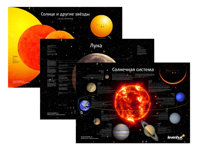 3. Набор постеров «Луна», «Солнце и другие звезды», «Солнечная система». Эта тематическая серия постеров поможет лучше изучить звездное небо и освежить в памяти основные сведения о Солнечной системе, ее планетах и спутниках, а также о далеких звездах. Яркие иллюстрации дополнены текстовыми блоками, удобными для восприятия. Формат каждого плаката – А1 (84х60 см). |