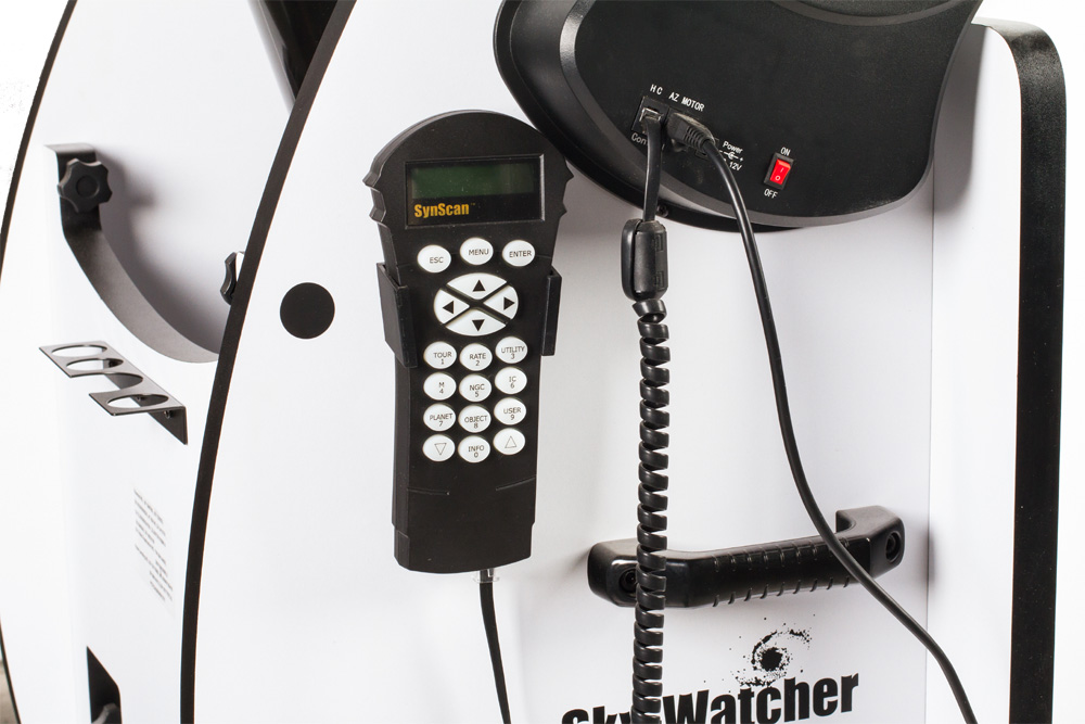 Оптическая труба устанавливается на монтировку Добсона с системой автонаведения SynScan AZ. База данных монтировки содержит информацию о 42 900 астрономических объектов. Чтобы начать наблюдения, пользователю нужно лишь выбрать любой из них и нажать на кнопку GoTo на пульте управления. Система автонаведения наведет телескоп на небесное тело и будет передвигать трубу по время наблюдений, чтобы нужный вам объект всегда оставался в центре поля зрения. Монтировка имеет азимутальную ориентацию, поэтому подходит для визуальных наблюдений и астрофотографии с короткими выдержками.