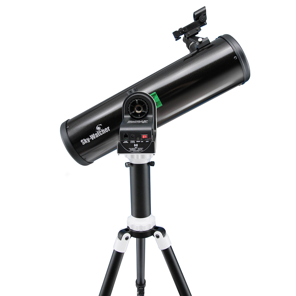 Оптическая труба установлена на азимутальной монтировке с моторными приводами. Она способна самостоятельно наводить телескоп на астрономические объекты и управляется при помощи смартфона. При необходимости к монтировке можно подключить и обычный проводной пульт SynScan, но в комплект поставки он не включен. Смартфон же дает доступ ко всем возможностям компьютерного наведения и не обременяет лишними проводами. Чтобы использовать функцию автонаведения необходимо лишь установить бесплатное мобильное приложение «SynScan» (загружается из официальных магазинов App Store и Google Play). Возможно и ручное управление телескопом.