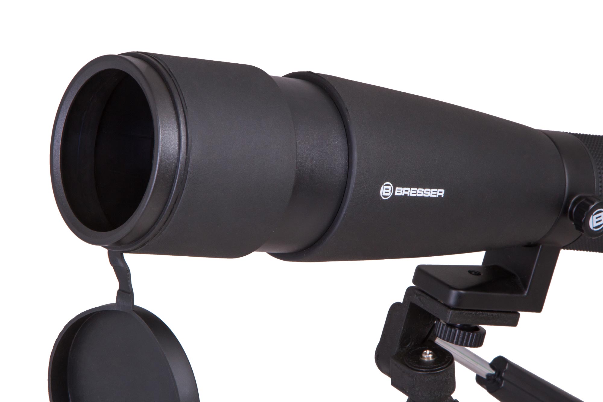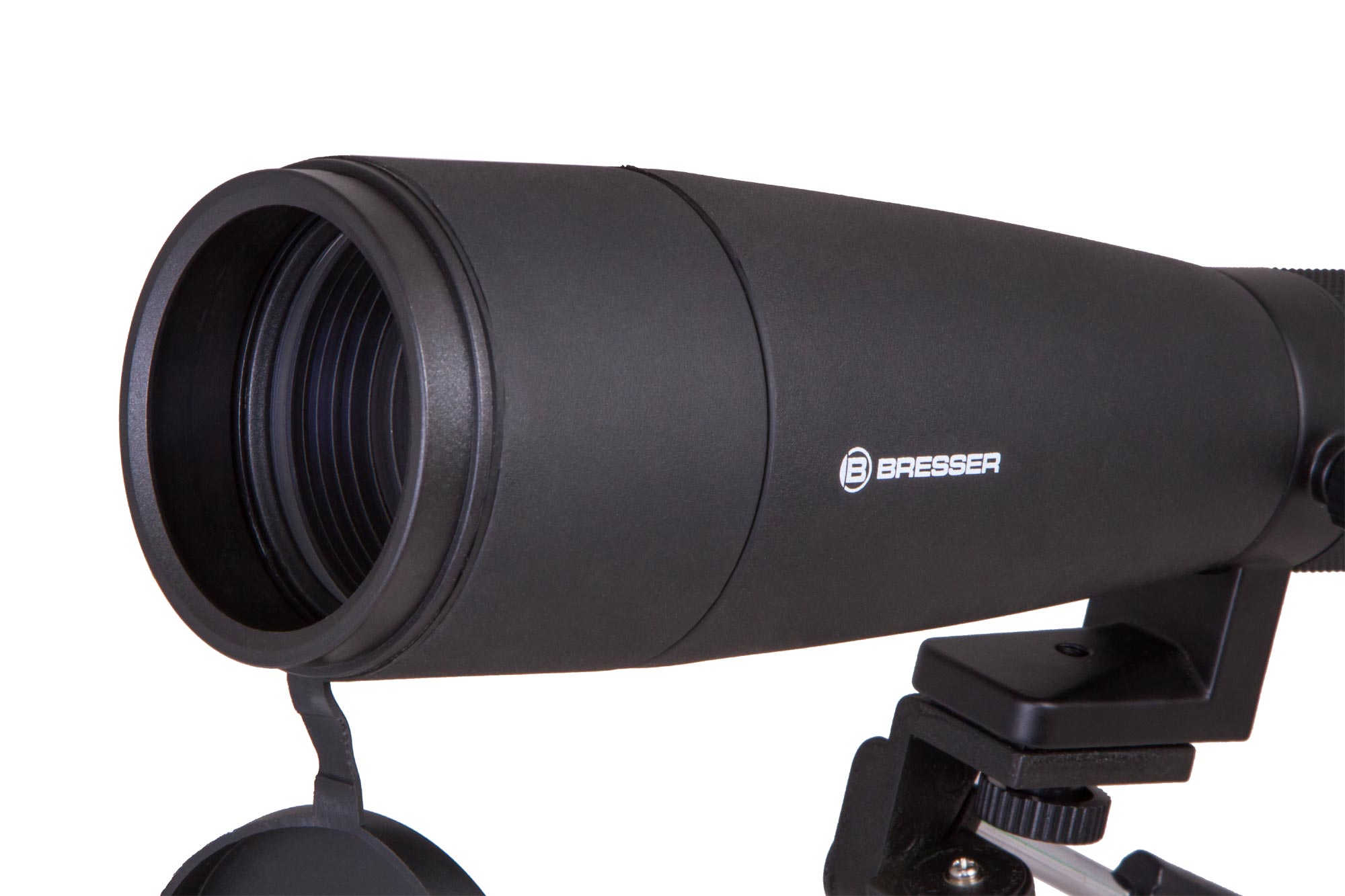 В зрительной трубе Bresser Travel 20–60x60 установлен панкратический объектив, который позволяет плавно изменять увеличение в диапазоне от 20 до 60 крат. Благодаря этому при наблюдениях можно или сосредоточиться на деталях сильно удаленных объектов, или одним взглядом охватить широкую область. Окуляр трубы расположен наклонно, что позволяет с максимальным комфортом изучать околозенитную область. Зрительная труба Bresser Travel 20–60x60 – отличный выбор для наблюдений за полетами птиц, изучения повадок животных или природных пейзажей. Ее можно использовать и для просмотра спортивных мероприятий на стадионе.