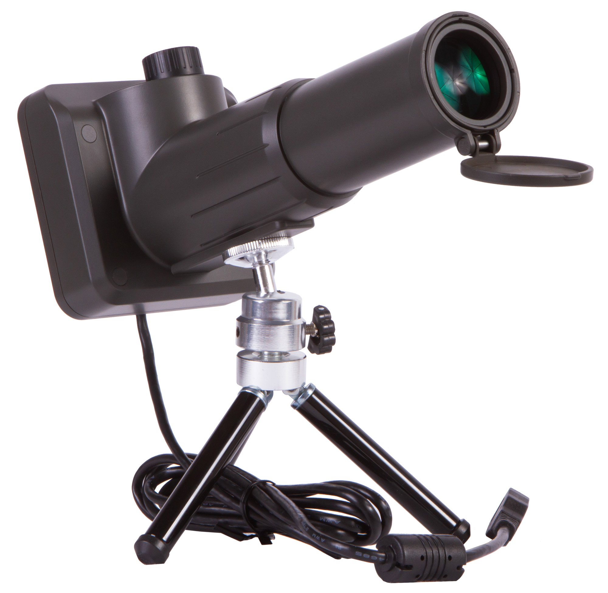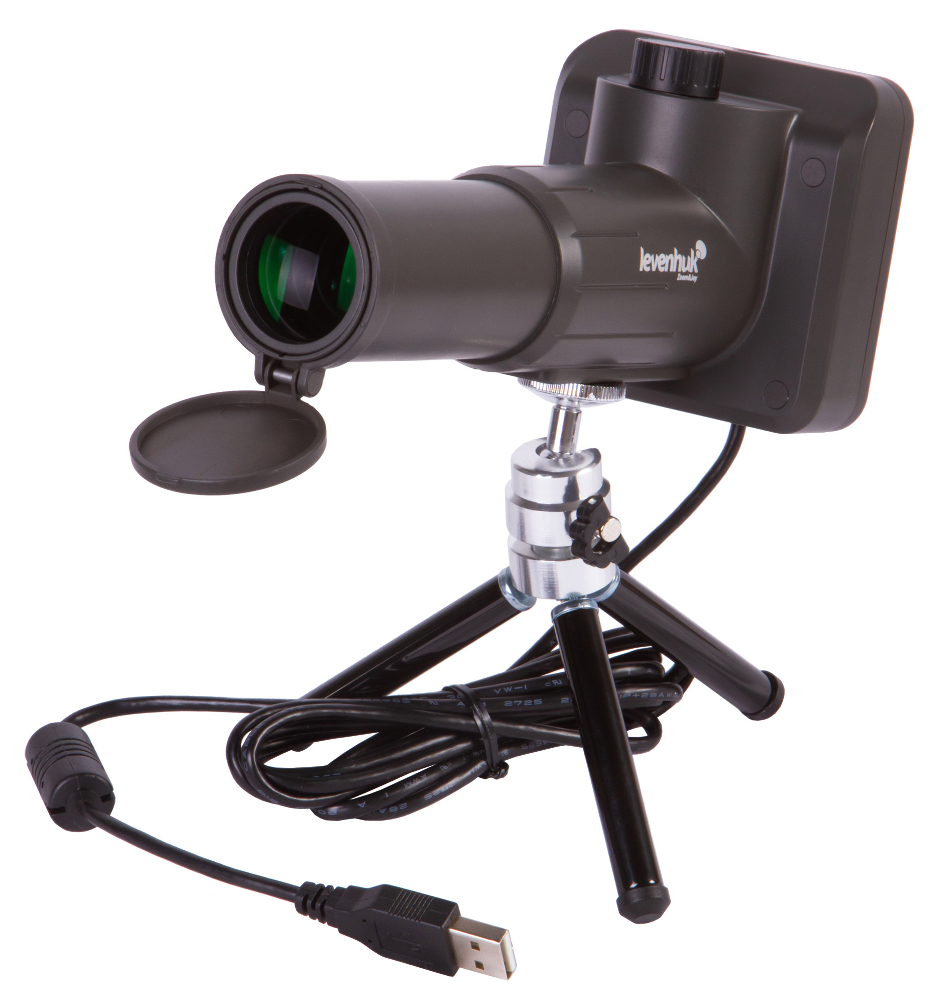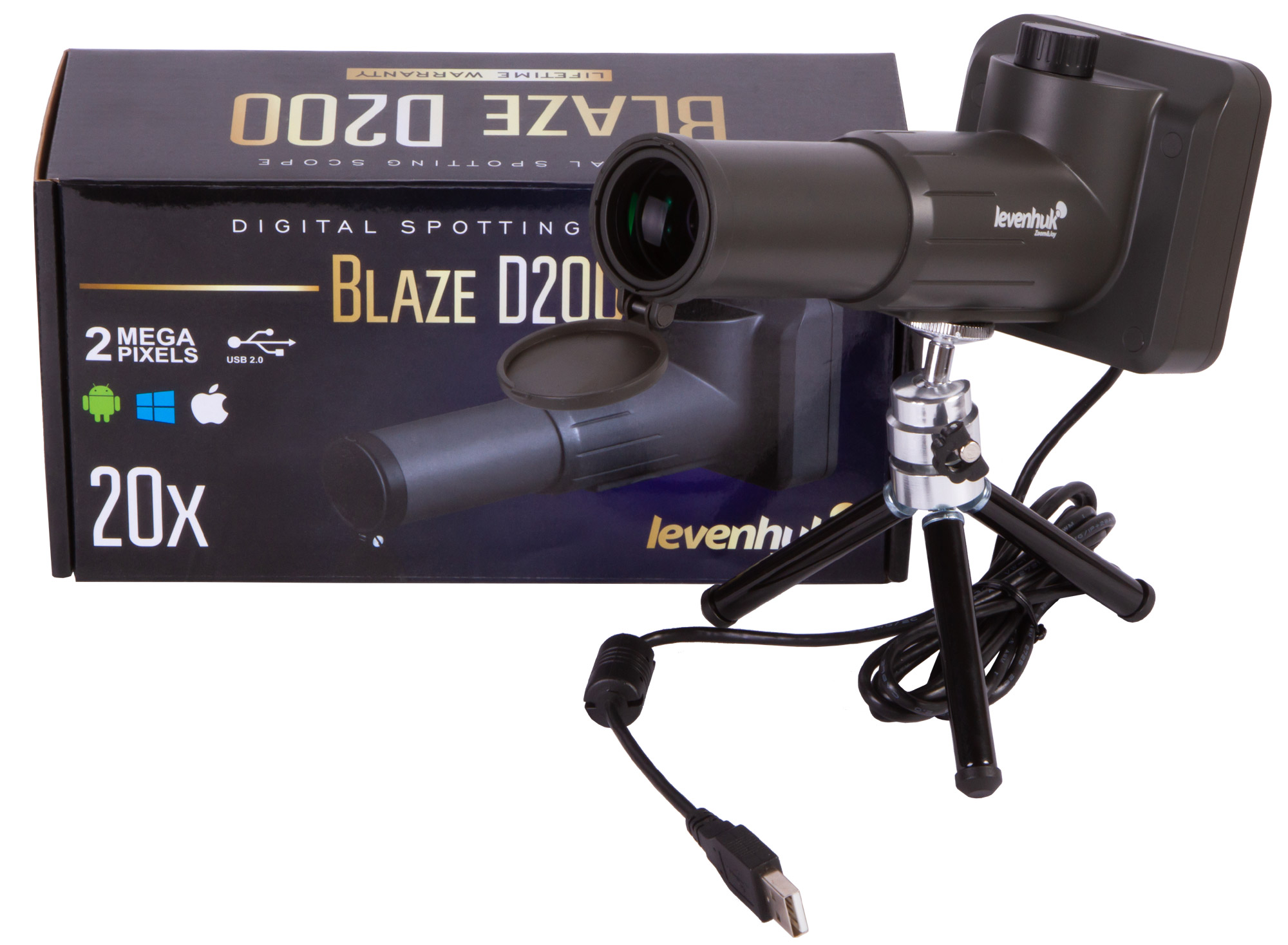 Несмотря на то, что Levenhuk Blaze D200 – это полноценный оптико-цифровой прибор, его нельзя использовать самостоятельно. В зрительной трубе нет встроенного экрана или окуляра, поэтому для просмотра изображения необходимо подключать внешнее устройство – например, стационарный компьютер, ноутбук, смартфон или планшет. Картинка выводится на его экран в режиме реального времени без пауз и прерываний. Запускать видеозапись и делать фотоснимки можно при помощи специального программного обеспечения (в комплекте). USB-кабель для подключения есть в комплекте поставки.