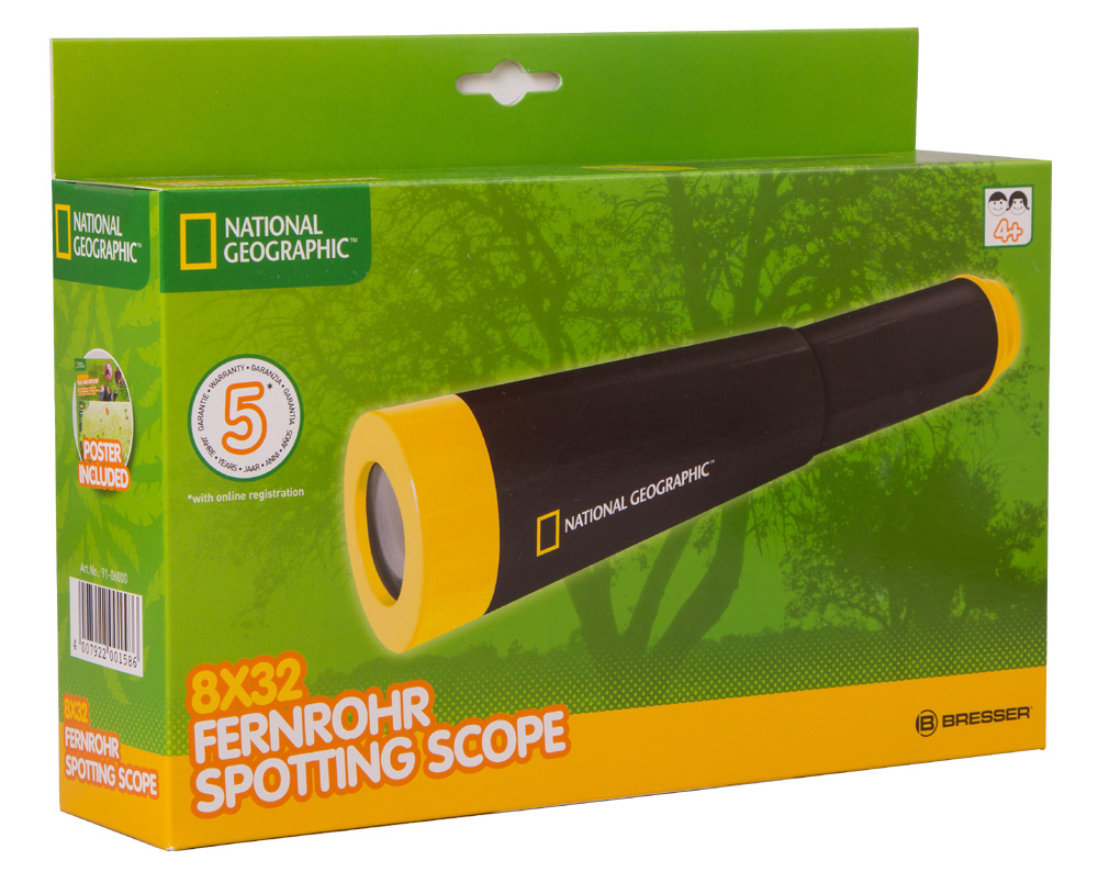 Детская подзорная труба Bresser National Geographic 8x32 прекрасно подойдет для решения любых повседневных задач: изучения деталей зданий, наблюдений за природой, игры в пиратов и разбойников. Она дает увеличение в 8 крат и позволяет в деталях рассмотреть удаленные предметы. Это настоящий увеличительный прибор, линзы которого изготовлены из специального оптического пластика. Корпус трубы складной, ударопрочный, яркой расцветки. Зрительная труба весит всего 98 грамм – ее очень удобно брать с собой на прогулку или в дорогу.